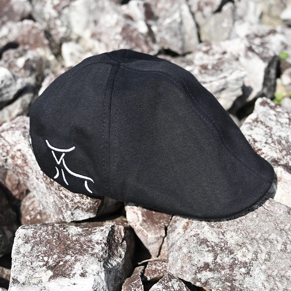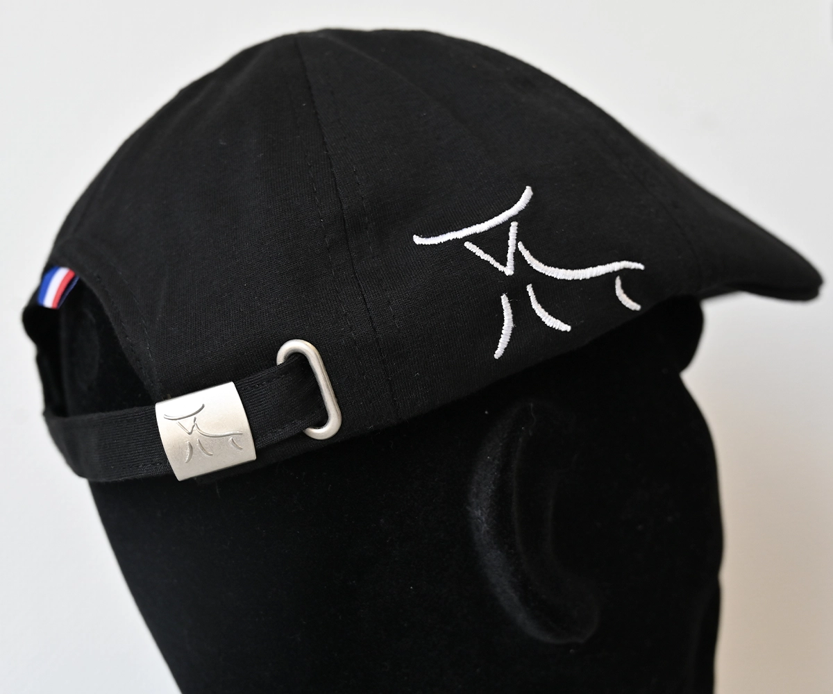 Gapette noire brodée blanche sur le côté, idéale pour parfaire votre look en toutes circonstances.