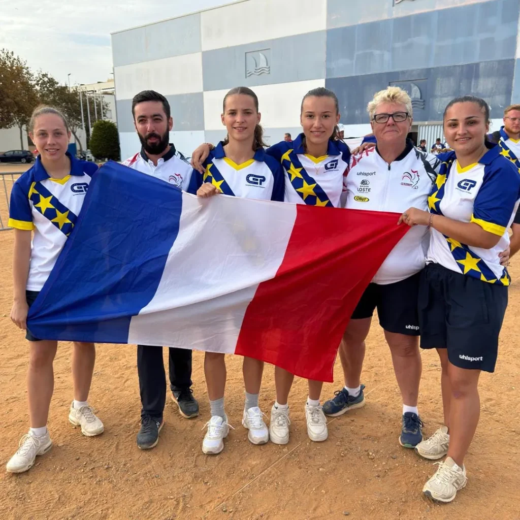 Océanne Bodenghiem (deuxième en partant de la droite) - Championne d'Europe triplette espoirs féminin